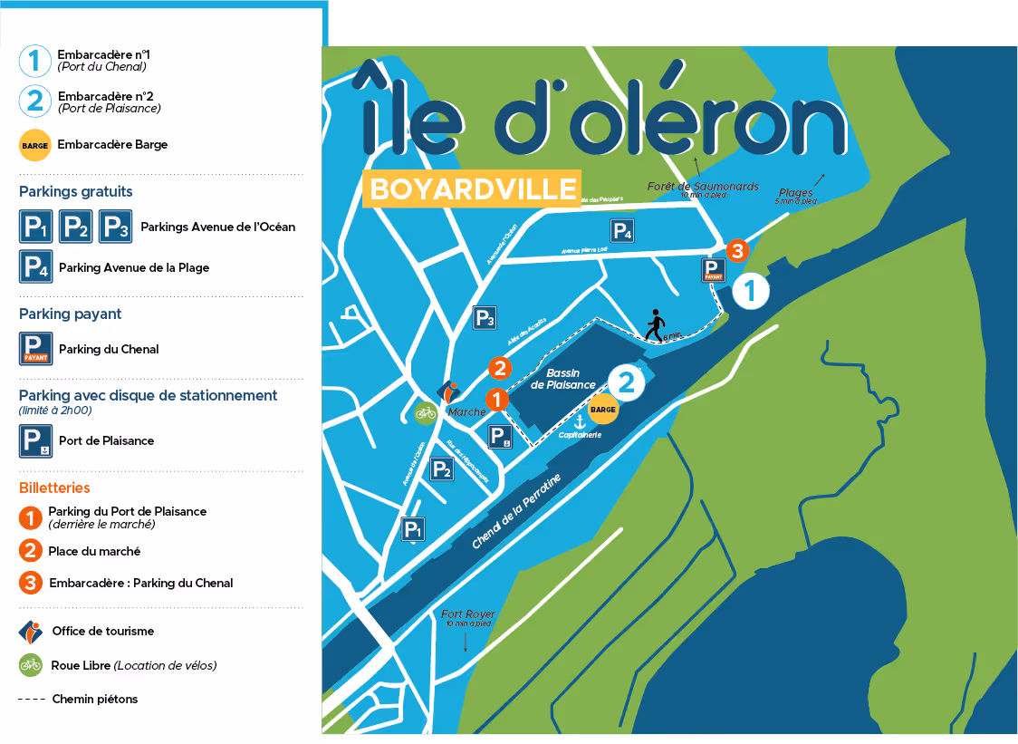 A Boyardville, il y a 2 embarcadères possibles pour votre traversée. Vérifiez votre billet sur lequel les informations de l'embarcadère se trouvent.